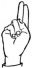 На ћирилици написано ДИНА АРСИКИН састоји се из 11 слова [?]. Исписано ћириличном једноручном азбуком за глувонеме: